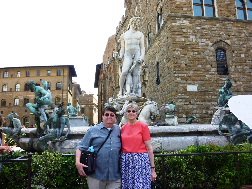 John and Janet at a reproduction of the Statue of David in Florence. The original is in the Uffizi Gallery